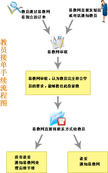 易教網接到學員信息后,查看您的資料,覺得您有可能適合某個學員的條件,通過電話通知您預約訂單。